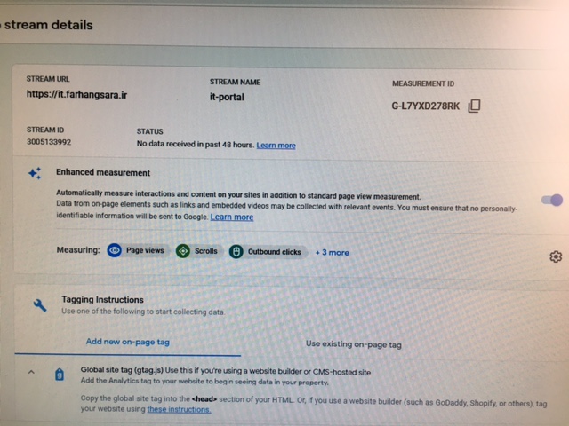 من تنظیمات مربوطه رو توی اکانت انجام دادم اما امار نشان داده نمی شود میخواستم ببینم کد مربوطه رو توی پرتال کدوم قسمت باید درج کنم.