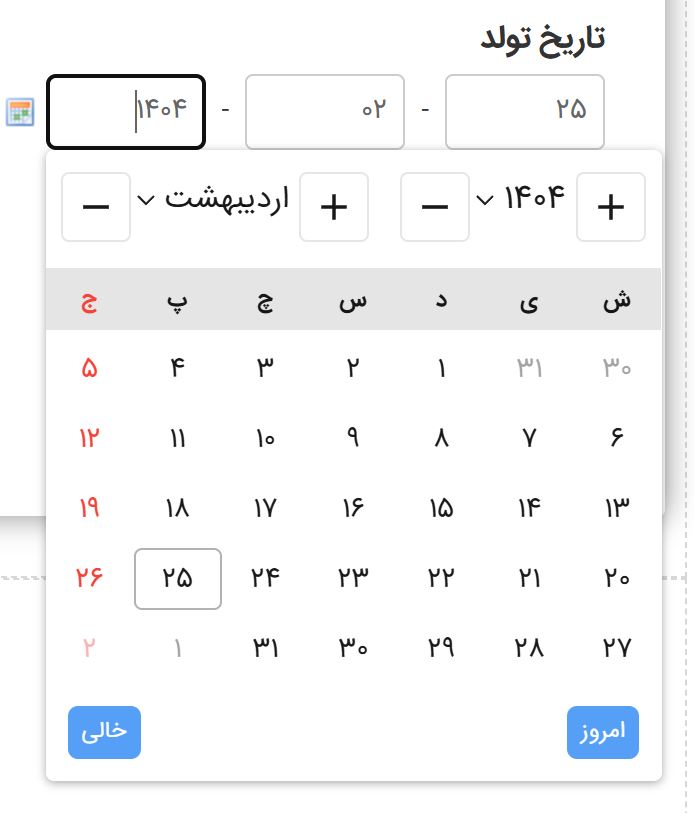 فرم ساخته شده بهمراه دیتاپیکر شمسی + فونت مناسب + راستچین برای نسخه 5.5
